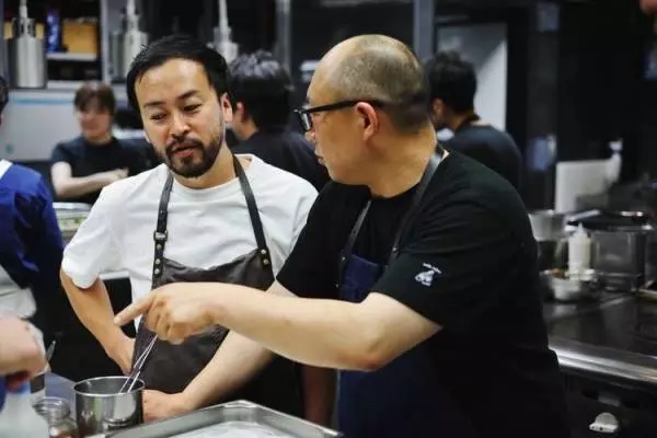 「NOTO NO KOÉ」のイベントのため【ESqUISSE】の厨房で調理をする平田氏(左)と池端氏(右)