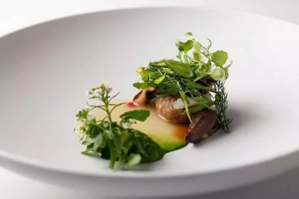 「NOTO NO KOÉ」で供された『レジリエンス|七面鳥、しいたけ、みょうが、能登のハーブ』と題した池端氏による一品