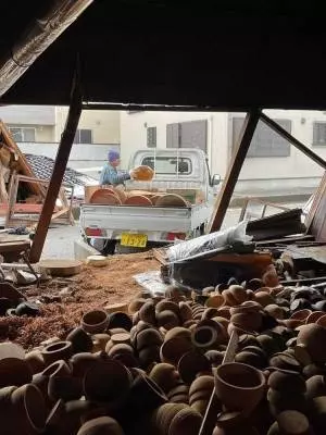 赤木氏:池下満雄さんは、86歳で現役の輪島塗の木地職人(アテやケヤキの木からろくろを引いてお椀の形を削りだす仕事)さんで、その仕事場なんですけどね、1月6日に初めて無事かなと見に行ったらこういう状態で。