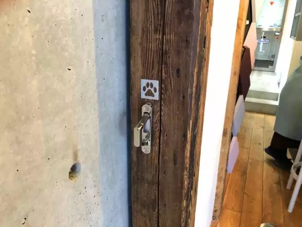 犬を連れてきてもOK。店内には犬のリードをかけるフックがあります