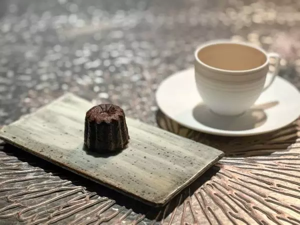 キャッチーなメニュー名に意表をつかれるアミューズ。カカオパウダーと黒ニンニクをベースに、少しの砂糖がほのかに甘みを感じさせる、お菓子ではなく前菜のカヌレと、濃厚で滋味深いすっぽんのスープのマリアージュからスタートします