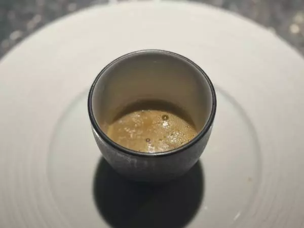 毛蟹最後の一皿はスープに。ベースはもちろん毛蟹ですが、隠し味にはバナナが入っていてほんのり甘みもあり、香味野菜がさらに毛蟹の味わいを引き立てています