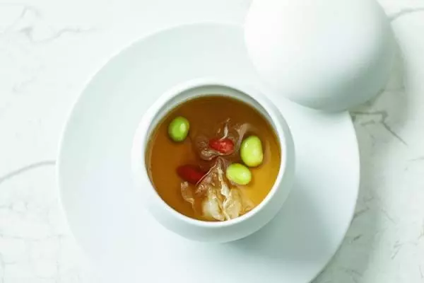 amuse『漢方卵のロワイヤル|白木耳|薬膳ブイヨン・ドゥ・レギュームの餡』