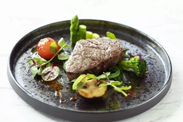 meat選択。写真は『漢方和牛フィレの炭焼き 月見コンフィ|ソース・オリエンタル』