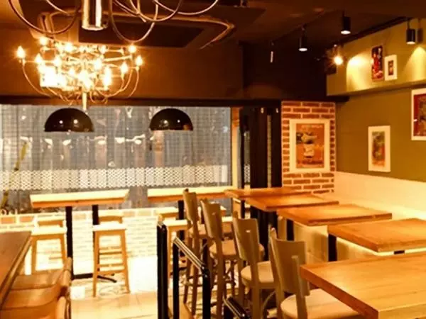 店内は木材を活かした、ほっと一息つける空間。友人同士のお集まりや会社帰りの一杯にも最適なテーブル席のほか、デートで使用したいカウンター席、さらにテラス席も。まるでスペインのバル街で食事をしているかのような賑わいの中、気取らない雰囲気で心地よい時間を過ごせそうです。