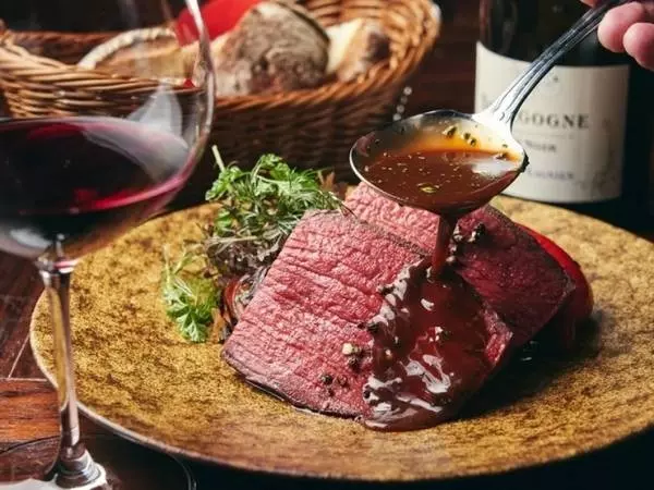 北陸魚介の前菜や生パスタと塊肉の炭火焼き、骨太ワインを堪能