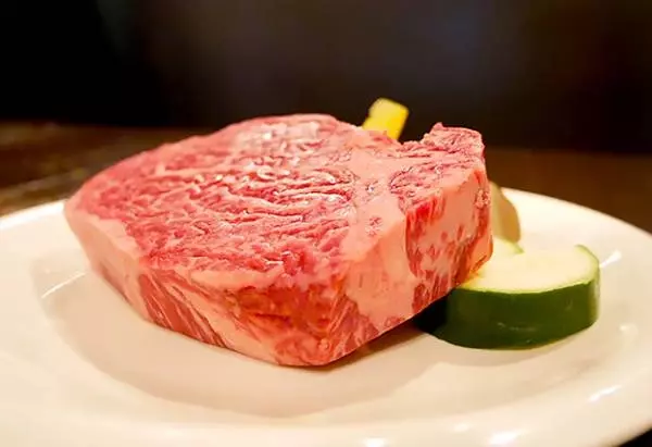 箸でちぎれるほどやわらかい『シャトーブリアン』150g 4,950円(税込)。肉の味わい方は、レモン汁または自家製グレイビーソース2種から部位や好みに合わせて