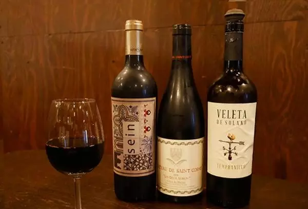 ワインはG660円(税込)~。写真は、スペイン産のフルボディ『ヴィレタデソラーノ テンプラニーニョ』G770円(写真右、税込)ほか