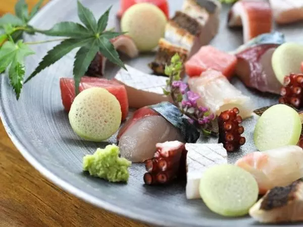 提供するのは完全予約制のおまかせコースのみ。その日仕入れた食材からメニューが決まります。長浜市場直送の旬の魚介を使用した料理や、肉料理をアレンジした創作料理の数々は、見た目でも楽しめるものばかり。地酒や地焼酎、希少なワインなどお酒のラインナップも充実しています。