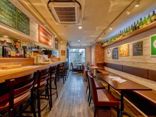 店内は明るいトーンでまとめられた開放的な空間。カウンター6席とテーブル席、さらに奥にはウッディな内装のパーティールームも備えています。