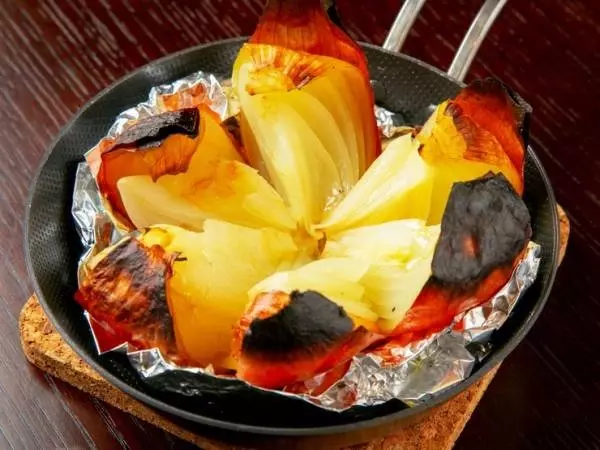 人気メニュー『玉葱の丸ごとロースト』。プラス料金で『ラクレットチーズがけ』にすることも