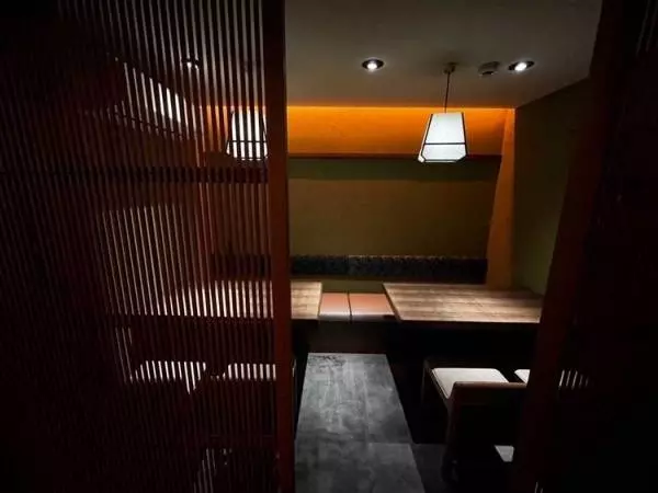 店内は「京の茶室」をイメージした和の趣を感じる空間。ひと際目を引くコの字型のカウンター席では、オープンキッチンのライブ感も楽しめます。他にも、テーブル席や最大8名まで入れる個室もあり、おひとり様から複数人での食事まで幅広いシーンで利用可能です。