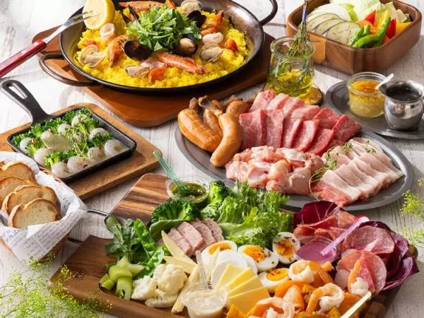 黒毛和牛カルビ、魚介がたっぷり入ったパエリアがビアガーデンで味わえるコース