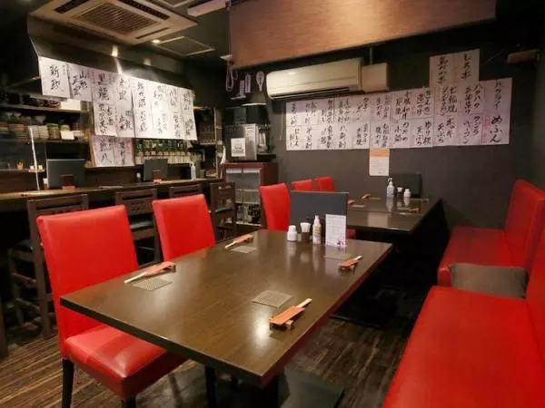 お店はビルの2階にあります。店内には、手書きのメニューがずらりと貼られていて、リラックスできる雰囲気。お一人様やカップルで使いやすいカウンター席、グループ利用にぴったりのテーブル席が用意されています。テーブル席は仕切りを設けることも可能なので、ゆっくりと旅の思い出を語ることもできます。