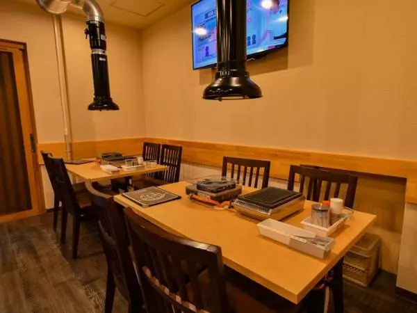 シンプルでウッディなエントランスから店内へ入ると、クリーンで落ち着ける空間が広がっています。店内にはカウンター席とテーブル席を完備。さらに個室も用意されているので、旅の思い出を語り合いながら、ゆっくりとおいしい焼肉を堪能することができます。