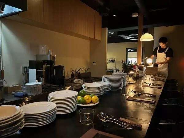朝9時からオープンしているため、朝・昼はベーカリーカフェとして、パン・コーヒー・ワインのイートインに加え、【しげくに屋55ベーカリー】のパンを20種類ほど店頭で販売。夜のレストランでは、アラカルトメニューと、おまかせコース(8,000円)も用意しています。