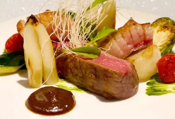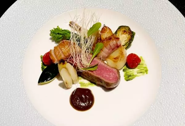 続いてご紹介するのは『仔羊の背肉のロースト』。9,900円のコースの一品です。じっくりローストされた仔羊は美しいロゼ色。キメは細かく柔らかく、噛むほどに味わい深くなる赤身肉ならではの旨味を堪能できます。