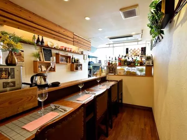 お店は2Fと3Fの2フロア。2Fはカウンター席とテーブル席があり、スタイリッシュな内装が大人の雰囲気です。ゆったりくつろげるオシャレな空間で、ワインを嗜み贅沢な時間を過ごすのもいいですね。パーティルームとしても使える3Fは、木をふんだんに使った設え。ぬくもりを感じる空間になっていて、子ども連れにもオススメです。
