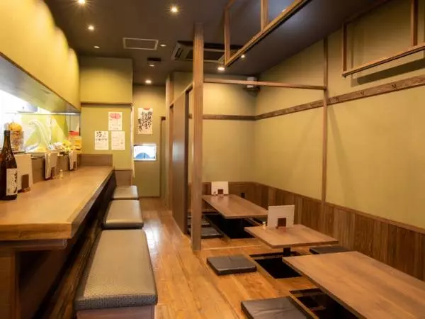 こぢんまりとした店内は、温かみのある落ち着いた雰囲気。おばんざいが並ぶカウンター席は、しっぽりと一人飲みを楽しむも良し、デートで食事と会話を楽しむも良し。掘りごたつ式の席はグループや家族連れで団欒するのにオススメです。地酒を中心に常時7種そろうお酒を傾けながら、くつろぎのひと時を過ごしてみませんか。