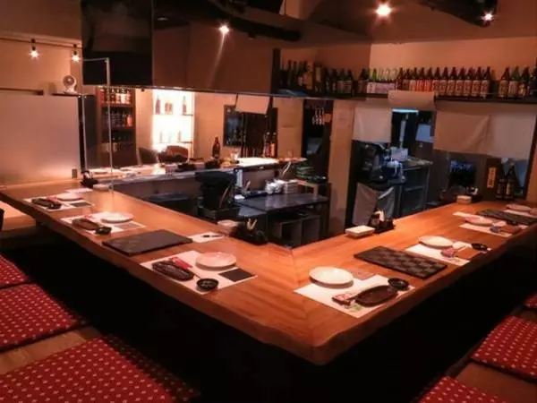 店内のコの字型カウンターは掘りごたつ席と椅子席を用意。2名用の個室が用意されているのもポイント。1部屋のみなので、利用したい場合は事前の予約がオススメです。コース料理をゆっくり味わったり、カウンターで飲みながら単品を気ままに楽しんだり、それぞれのシーンに合わせて使い分けができます。