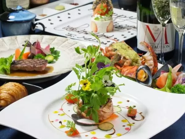 ランチもディナーも、料理はフルコースで提供。京都園部の契約農家から仕入れる朝採り野菜をはじめ、料理人が選び抜いた魚介や国産A5ランク黒毛和牛など、こだわり食材を豊富に使用した料理の数々は、SNS映えも間違いなしの美しさです。フランス産を中心としたワインも豊富に揃っているので、極上のマリアージュをぜひ楽しんで。