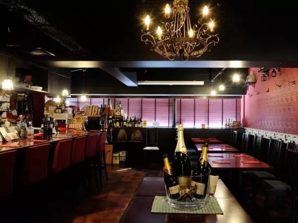 たくさんのワイン生産者のサインが書かれたエントランスの壁が雰囲気を盛り上げてくれます。赤と黒を基調としたオシャレな店内にはテーブル席に加えて、半個室、個室も完備。ウェルカムシャンパン、メッセージ付きデザートもついた記念日にぴったりのコースもあり、心に残るひとときを過ごせます。
