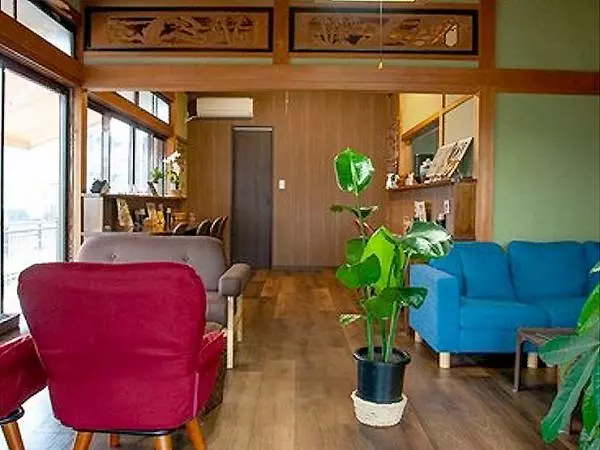 お店は古民家をリノベーションしてオープン。敷地内に5台分の駐車スペース(1グループ1台利用)が設けられているので、車でのアクセスも安心です。店内はソファ席やカウンター席を完備。ウッディでリラックスできる空間には、欄間も残されるなど、和洋をミックスしたくつろぎスペースになっています。