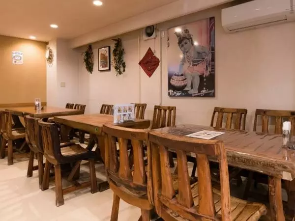 店内はカフェテイストの設えがオシャレな空間。インド料理店を初めて訪れる人も、くつろいで過ごせそうな明るい雰囲気です。タイ製の木製テーブルやインド風のインテリアが、そこはかとないアジアンテイストを醸し出しています。外が見えるカウンター席もあり、お酒とスパイシーなメニューでチョイ飲みするのもいいですね。