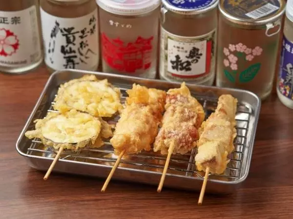 日本海の漁港より、自社流通便で魚介を取り寄せ。刺身をはじめとしたさまざまな調理法で旬の味を堪能できます。1本から気軽に注文できる『串天』は、魚、肉、野菜とバリエーション豊富。日本酒は日本各地のご当地カップ酒が充実しています。単品注文でも飲み放題を付けられるので、酒飲みさんも大満足。