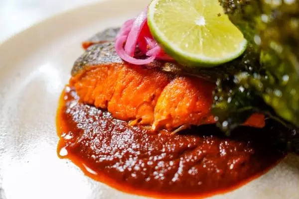 ジューシーにグリルされたサーモンを、パイナップルやリンゴなどのフルーツをチレやスパイスで煮詰めたソースをたっぷりと絡めて食べる一皿です。シンプルなグリルの美味しさに複雑な香りのソースが乗り、メキシコ料理ならではのスパイスとフルーツの調和を実感することができます。