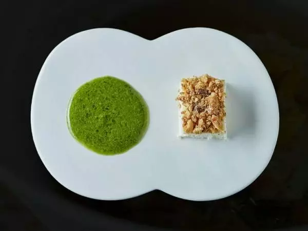 目と舌で味わう『前菜チーズケーキ自家製春菊のジェノベーゼ』