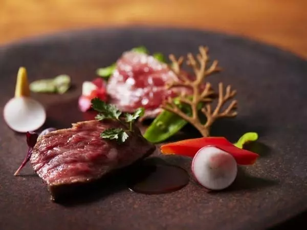 旬の食材を用いて生み出される料理は、「想定外」と「感動」が楽しめるクリエイティブさが魅力。ランチ、ディナーともに、多彩な料理が組み合わされた贅沢なコースで提供されます。味はもちろん、盛付けにもこだわり、料理に合わせて器も厳選。陶器だけではなく木の皿を使うといった遊び心も大切にしながら、訪れるゲストをもてなしてくれます。