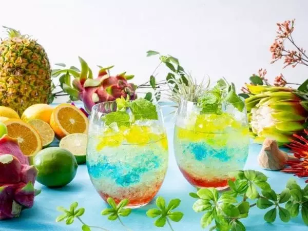 赤青黄色のサマーモクテルは、ビビッドな色彩と爽やかなフレーバーが特徴のカクテルです。目でも楽しめる鮮やかさと、口に含んだ時の爽快感が楽しめます。その他のドリンクはフリーフローで、ロンネフェルト紅茶セレクションとコーヒー、カフェラテなどをラインアップ。
