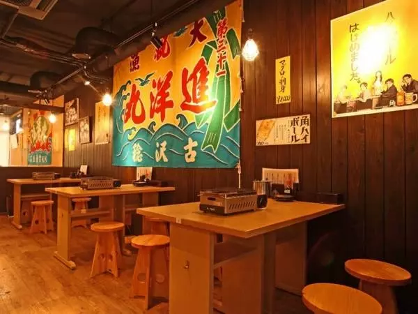 店内は、大漁旗が飾られた活気のある雰囲気。お店の入口にショーケースがあり、種類豊富な魚介を眺めながら「どの食材を選ぼうかな」と悩む時間も楽しいものです。また、店内奥にはテラス席もあり、晴れた日は外の空気を吸いながらバーベキューを楽しむことも! 築地での楽しい思い出づくりにいかがですか?
