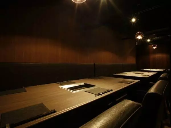 エントランスから店内へ入れば、シックでスタイリッシュなプライベート空間が広がっています。完全個室やVIPルームも完備しているので、大切な食事会やビジネスシーンでの接待などにも利用可能。コースには飲み放題を付けることもできるので、さまざまなスタイルで楽しめます。