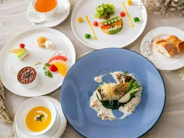 季節の食材を使ったフレンチのコースを、非日常的な空間で