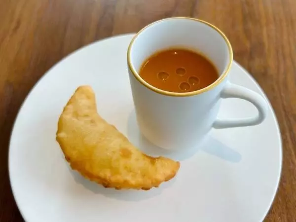 【TOKYO NODE DINING】のアフタヌーンティーのテーマ「レストランが提案するコース仕立てのアフタヌーンティー」はそのままに、ガスパチョとパンツェロッティのアミューズから始まります。スタンドの上段には【DOLCE TACUBO】の定番を含むスイーツ5種、下段にはスイーツとのバランスを考えられた“あまじょっぱい”セイボリー5種。最後に、紅茶クリームとレモン&オレンジのジャムが添えられた【TOKYO NODE DINING】オリジナルの『バスク風チーズケーキ』が提供されます。