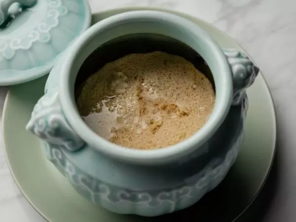 『鶏泥湯』こと『鶏胸肉と干貝柱の旨みふわふわスープ』1000円。シェフの力量が伺える一品