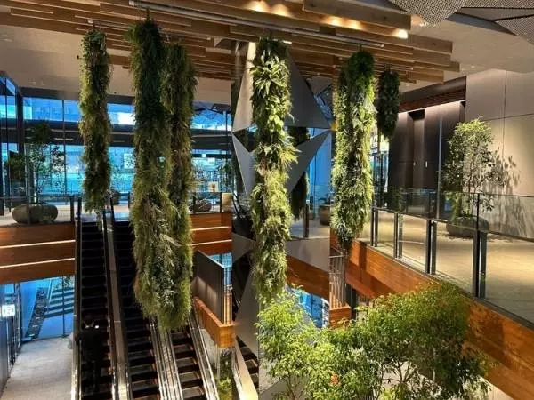 2階天井に配置された「垂直庭園」は、国内ではあまり見られない新たな試みで、空間全体の緑視率を向上させる効果が期待されています