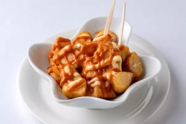 フライドポテトの上に、ピリッと辛いサルサブラバと自家製アリオリソースをかけた一品です。