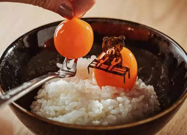 もう一つの名物料理が『熊のたまごかけご飯』。一般的な卵かけご飯と違うのは、卵になる前の卵黄部分〝きんかん〟を使っていること。弾力のある膜をぷちんと割ると、トロリあふれ出る黄身がたまりません!