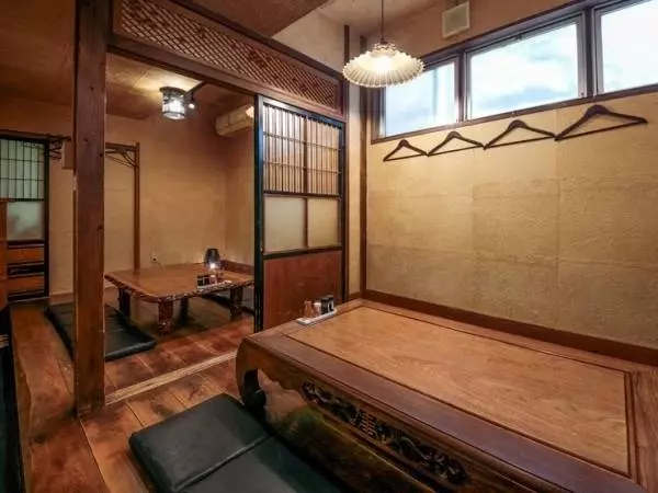 店内は、和風でモダンな落ち着いた雰囲気。広々としたホール席や、木目調のカウンター席のほか、昭和初期をイメージしてデザインされた座敷が用意されています。一人飲みやデート、宴会までどんなシーンにもフィット。時間を気にせずゆったりと過ごせます。