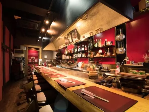 店内は赤をベースにゆったりとくつろげる空間。分厚い木製のカウンター席に座れば、厳選食材を目の前で調理する様子を見ることができます。座敷席も用意されていて、子ども連れでもゆったりと食事できるのがうれしいところ。お一人様からカップル、食事会まで幅広いニーズに応えてくれます。