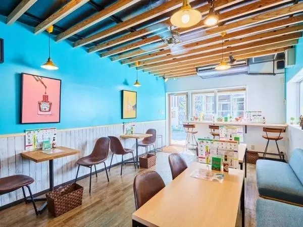 沖縄の海を思わせるブルーが印象的な店内は、海外のリゾート地を訪れたようなオシャレな空間。