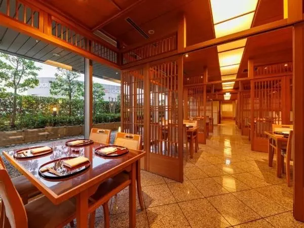 店内は落ち着いた木の風合いに包まれ、温かく心地よい空間が広がっています。檜の一枚板は、目の前で繰り広げられる、熟練の職人技を眺めながら食事を満喫できる人気席。個室も完備され、慶事や会食といったさまざまな場面で利用可能です。京都の路地を思わせる趣ある石畳の小道や美しい日本庭園など、喧噪を忘れさせてくれる非日常がここにあります。