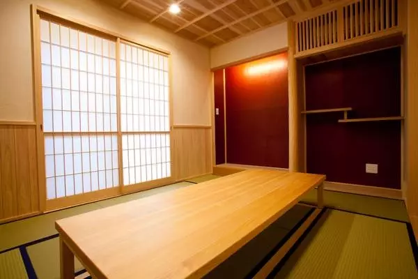 京都御所や二条城、北野天満宮や金閣寺、大徳寺など、名だたる名所に囲まれた西陣の地に店を構える同店。趣深い入り口から入り、石畳の路地を抜けると、上質な空間が広がっています。木の質感が清々しい店内は、高級感漂う純和風の設え。すべて完全個室になっているので、プライベート感を重視したいハレの日にふさわしいお店です。