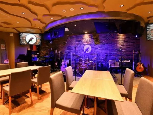 【Dining & Music BAR 音STAGE】は、神田駅から徒歩2分の場所にある、自ら楽器演奏や歌唱ができるスタイルのアミューズメントバー。店内には、ステージを中心に半円になったホールや2名~5名で利用できるVIPルームのほか、カウンター席も。音楽好きのお一人様同士がここで意気投合、なんてこともあるそうです。