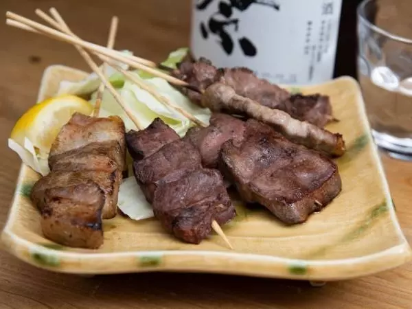 水とエサにこだわって健康に育てられた「石見ポーク」を炭火で炙った『焼き豚串』は、他では味わえないおいしさ。『せせりの炭火焼き』など鶏肉を使ったメニューも人気があります。料理に合わせたお酒も豊富に取り揃えており、日本酒は山口県のものだけを厳選。