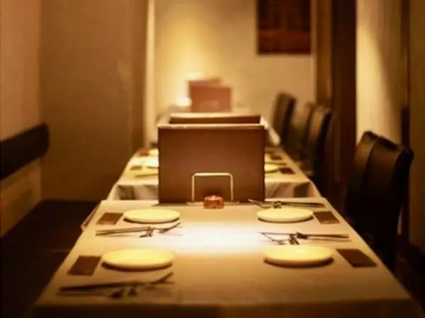 店内はシックで落ち着いた上質な空間。デートや少人数での食事会にもぴったりのカウンター席やテーブル席のほか、プライベートな空間でくつろげる個室も人気。ボトルで約50種、グラスも10種ほどラインナップされたワインとジビエのマリアージュを、ゆっくりと堪能できます。