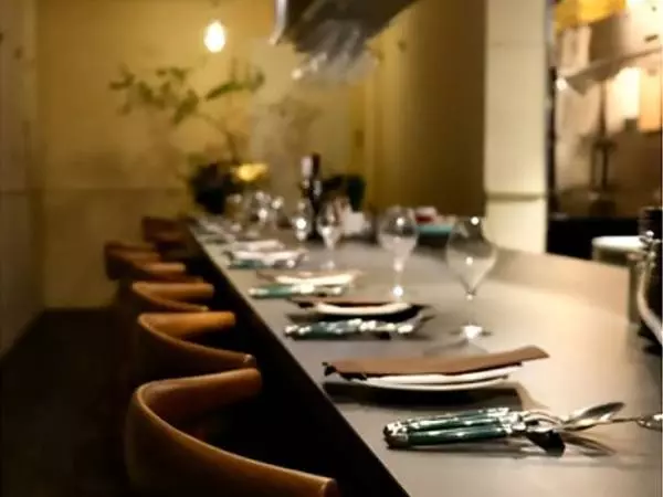 シンプルなエントランスから店内へ足を踏み入れると、そこにはシックでモダンな空間が広がっています。シェフが調理する姿を間近に楽しめるカウンター席はライブ感たっぷり。ヴィーガンやペスカタリアンにも幅広く対応しているので、メニューの希望があれば予約時に相談してみてください。